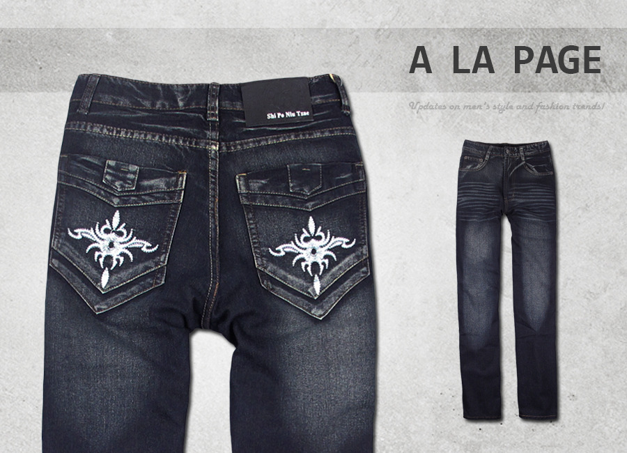 123-2082 牛仔長褲 厚實圖騰電繡.拼接多層次造型口袋