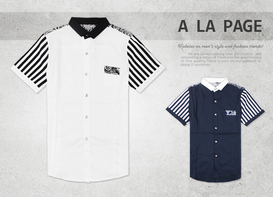 66-8830 微彈性短袖襯衫.等寬條紋滾邊袖