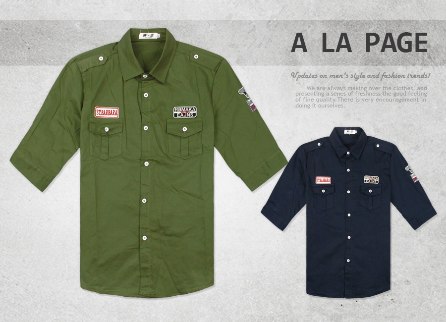 66-8981 七分襯衫.美式軍風.肩扣造型