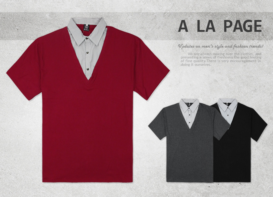 35-7175 舒適彈性短袖.假兩件.深灰條紋領