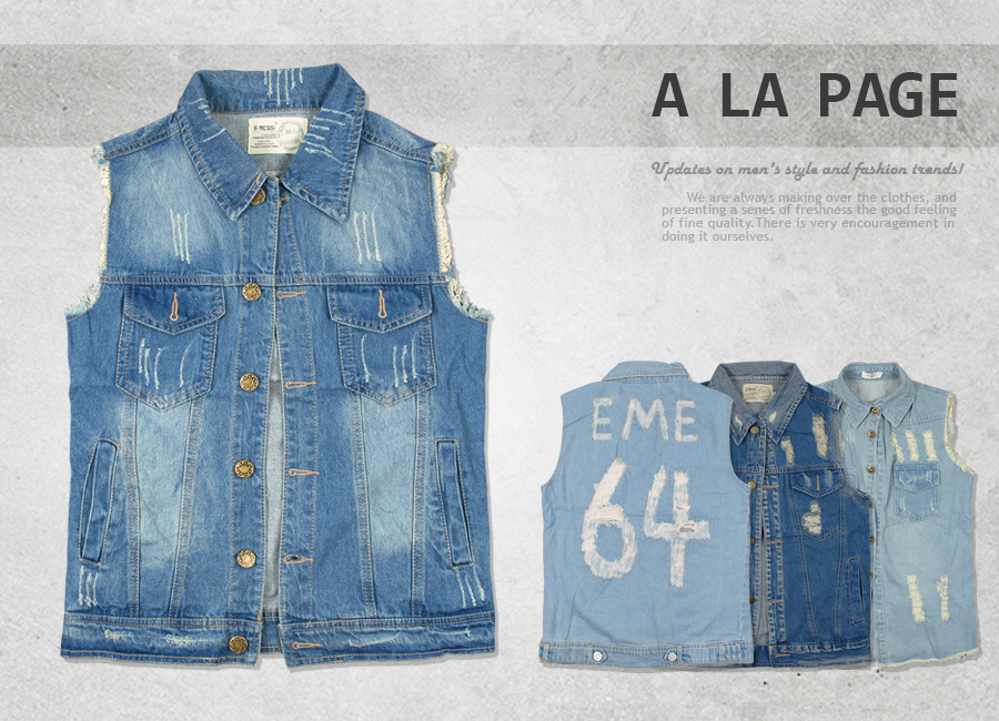 66-0022 牛仔背心.刷破 - 貓鬚 - 復古
