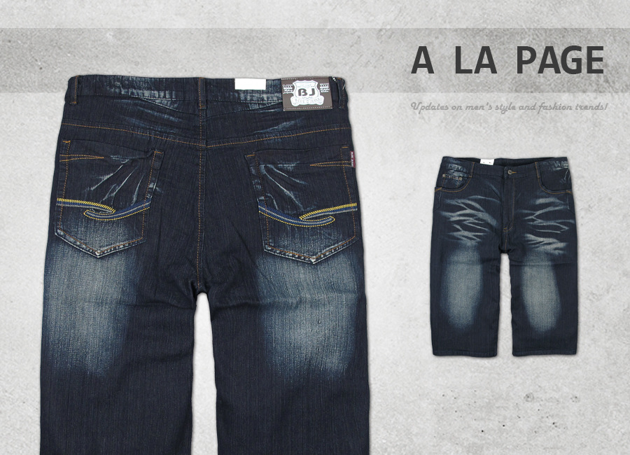 65-6930 加大尺寸.牛仔短褲‧仿抓皺刷色
